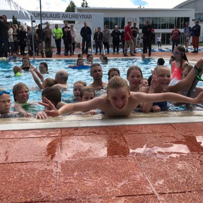 Mikil eftirvænting ríkti í Sundlaug Akureyrar í dag þegar nýju rennibrautirnar voru vígðar við hátíðlega athöfn. Akureyrarbær efndi til nafnasamkeppni þar sem leitað var eftir nöfnum á allar þrjár nýju rennibrautirnar í lauginni.