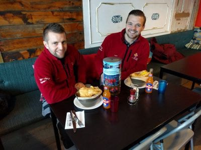 Hressir strákar úr Hjálparsveitinni Dalbjörgu á Akureyri Fish and Chips