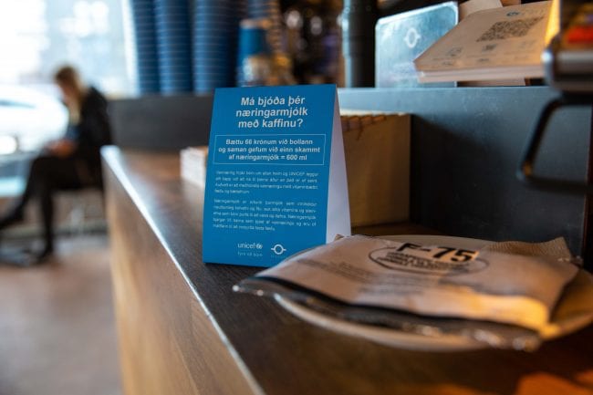 Söfnunarátakinu í kaffihúsum Te & Kaffi er nú lokið en alltaf er hægt að gefa næringarmjólk í gegnum vefverslun UNICEF á Íslandi hér.