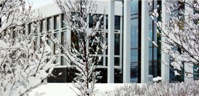 Þriggja til fimm hæða stallað hús við Norðurtorg