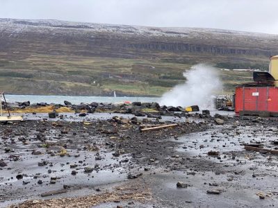 Sjór gengur yfir götur bæjarins