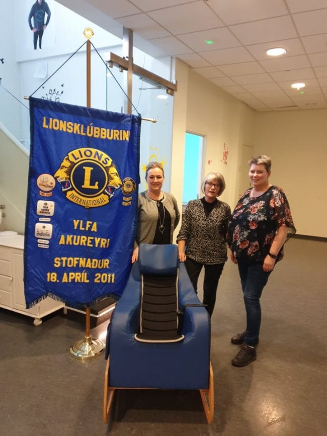 Lionsklúbburinn Ylfa hefur undanförnum árum stutt við Skammtíma og skólavistun Akureyrar. Á dögunum afhentu Ylfukonur vistuninni þyngdarafls stóll (Gravity Chair) sem er stóll með svampílagi sem veitir stuðning og stöðugleika fyrir börn og fullorðna með mismunandi fatlanir. Svampílagið lagar sig að líkama þess sem situr í stólnum.