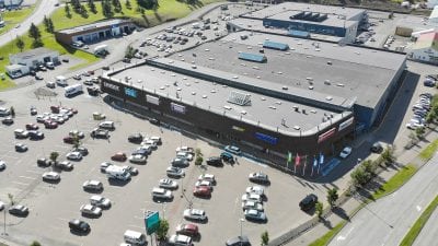 Þriggja til fimm hæða stallað hús við Norðurtorg