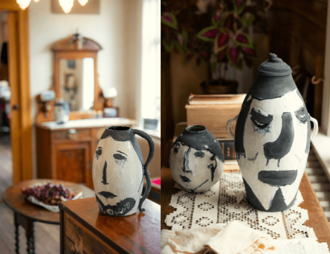 Meðfylgjandi myndir er teknar af Daníel Starrasyni og eru af tveimur verkum Margrétar „Matthías Jochumsson“ og „Guðrún Runólfsdóttir“.