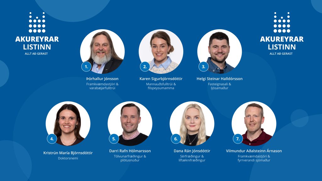 Akureyrarlistinn sem mun bjóða fram í komandi sveitarstjórnarkosningum á Akureyri kynnti í dag efstu 7 sæti á lista sínum. Í tilkynningu frá Akureyrarlistanum segir að listinn sé skipaður öflugum og framsæknum hópi fólks sem vill ná raunverulegum árangri fyrir bæjarbúa með skýrum áherslum og lausnum.