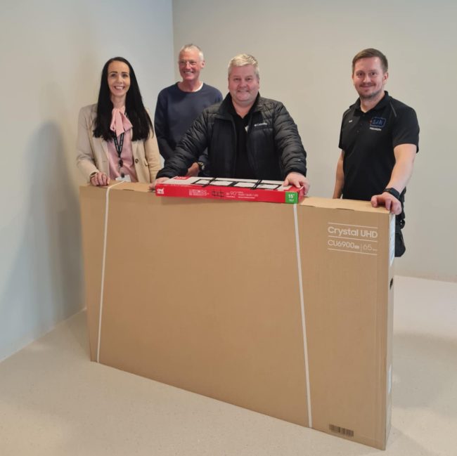 „Í tilefni þess að geðdeild SAk er að flytjast inn í nýuppgert rými kom raftækjaverslunin ELKO færandi hendi og gaf deildinni 65″ sjónvarp. Það mun nýtast deildinni sérlega vel inni í dagstofu sjúklinga.“ segir í Facebook-færslu SAk.
