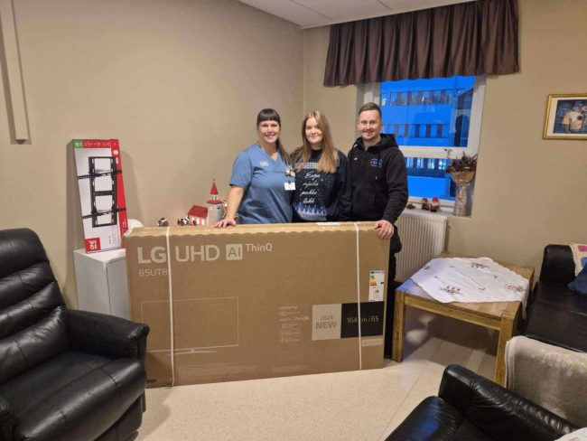 Styrktarsjóður ELKO gaf lyfjadeild SAk sjónvarp og veggfestingu í nýtt aðstandendaherbergi sem verið er að endurbæta. Sólveig Hulda Valgeirsdóttir aðstoðardeildarstjóri tók við gjöfinni ásamt Karli Ólafi Hinriksyni verkstjóra húsumsjónar. Sara Hlín Hauksdóttir, starfsmaður ELKO á Akureyri, afhenti gjöfina í herberginu í dag.