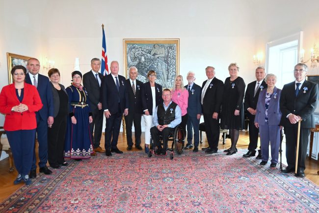Forseti Íslands, Guðni Th. Jóhannesson, sæmdi 14 íslendinga heiðursmerki hinnar íslensku fálkaorðu við hátíðlega athöfn á Bessastöðum í gær. Orðuhafar voru alls 16 talsins en tveir þeirra eru staddir erlendis og fá orðum sínum úthlutað seinna.