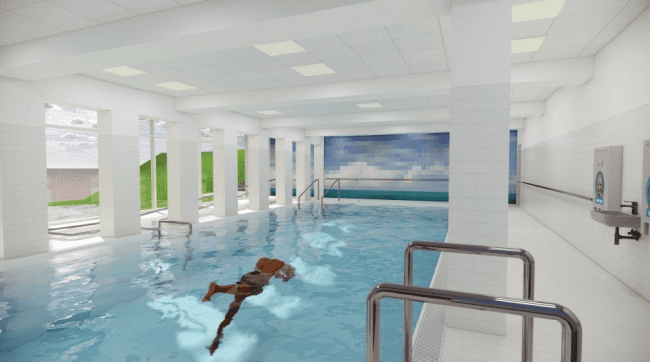 Framkvæmdir við innilaugina í Sundlaug Akureyrar hófust í dag. Mikil áhersla verður lögð á bætt aðgengi í nýrri aðstöðu.