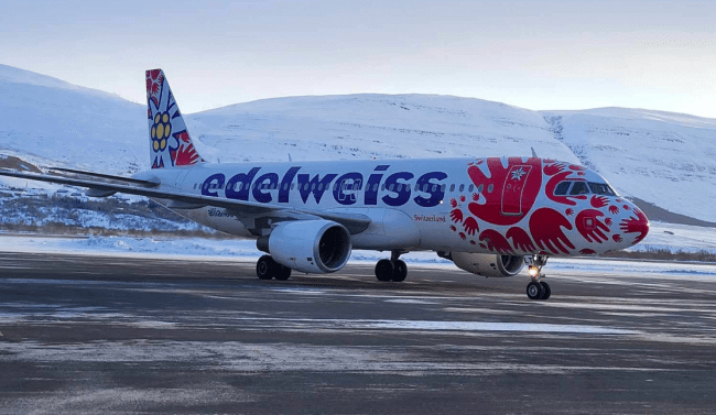Fyrsti hópurinn á vegum ferðaskrifstofunnar Kontiki kom til Akureyrar í dag frá Zurich. Flugfélagið Edelweiss flýgur fyrir Kontiki í beinu flugi á milli Akureyrar og Zurich. Í tilkynningu Isavia segir að fullkomið vetrarveður hafi verið við komuna á Akureyrarflugvelli í dag.