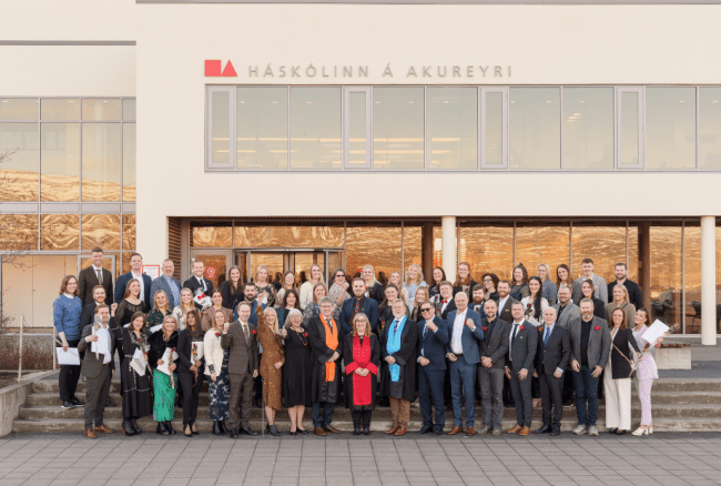 Brautskráningu 88 kandídata var fagnað á Vetrarbrautskráningahátíð Háskólans á Akureyri á laugaradginn 15. febrúar síðastliðinn. Þar brautskráðist fyrsti hópurinn úr framhaldsnámi í stjórnun við Viðskiptadeild. Þetta kemur fram á heimasíðu Háskólans á Akureyri. Fyrstu stúdentar í þessu námi innrituðust í MS og MM nám haustið 2023 og eru því að útskrifast núna, en námið er eins og hálfs árs langt.