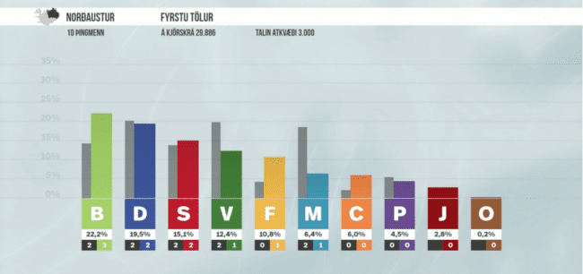 Fyrstu tölur úr Norðausturkjördæmi eru komnar í hús. 3000 atkvæði hafa verið talinn og Framsóknarflokkurinn er stærstur í kjördæminu samkvæmt fyrstu tölum.