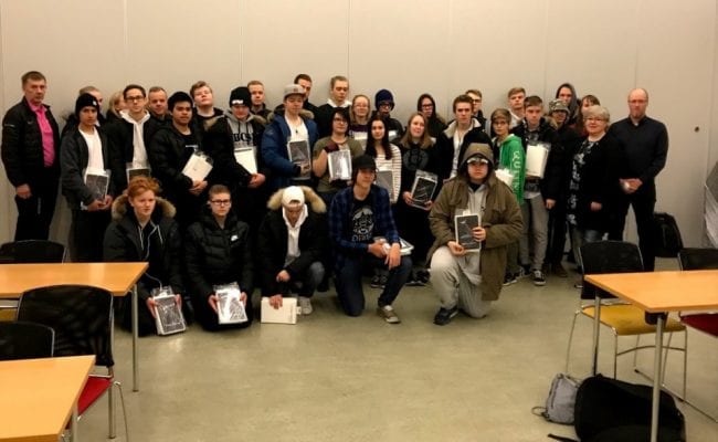 Á dögunum komu fulltrúar Rafiðnaðarsambands Íslands (RSÍ) og Samtaka rafverktaka (SART) í VMA og færðu 35. nemendur í grunndeild rafiðna spjaldtölvur af gerðinni Samsung að gjöf. Þetta er ekki í fyrsta skipti sem Rafiðnaðarsambandið og SART gefa nemendum í rafiðngreinum spjaldtölvur, slíkt hefur verið árlegur viðburður undanfarin ár. Á vef Verkmenntaskólans er greint frá þessu og sagt þessar gjafir undirstrika áherslu rafiðngreina á rafrænar upplýsingar en mikið af kennsluefni í rafiðngreinum er aðgengilegt á vefnum www.rafbok.is og var Bára Halldórsdóttir, verkefnastjóri Rafbókar hjá Rafmennt, einmitt ein þeirra sem afhentu VMA-nemum spjaldtölvurnar.