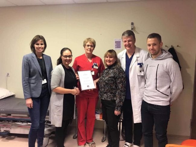 Áður en fulltrúar sjóðsins gáfu gjafir til Glerárskóla var komið við á göngudeild SAk og henni gefin meðferðarstóll að verðmæti 830.000 kr. en Baldvin dvaldi á göngudeildinni í sinni meðferð á sínum tíma.
