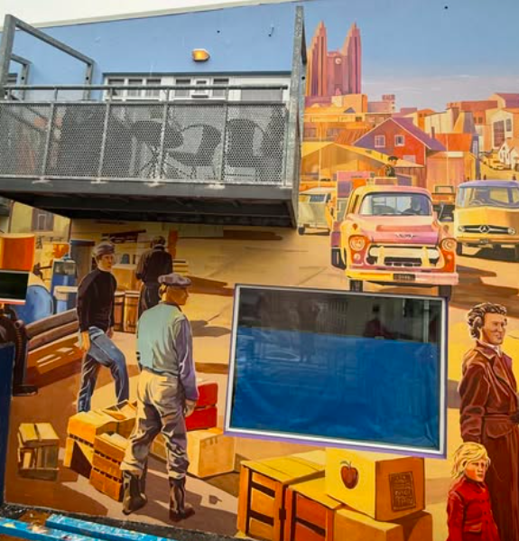 Verkið er á austurhlið Kaupvangsstrætis 19, þar sem Fornbókabúðin Fróði var til húsa um árabil. Það blasir því við gestum og gangandi í hjarta bæjarins. Málverkið er byggt á gömlum ljósmyndum af Akureyri.