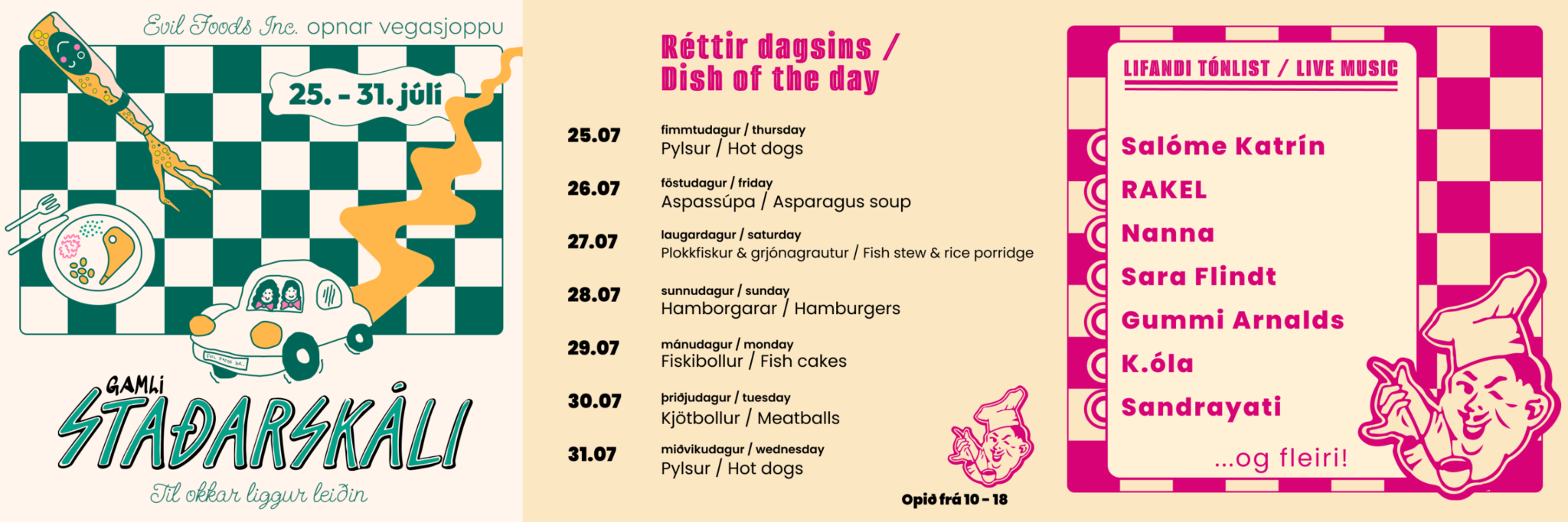 Hér að neðan má svo finna viðburðinn á Facebook og hægt er að fylgja Evil foods inc. á Instagram. Sömuleiðis er dagskrá vikunnar hér að neðan