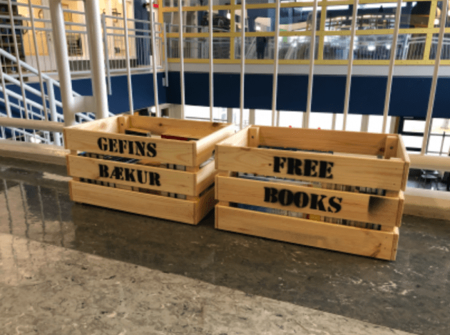 Amtsbókasafnið á Akureyri hefur komið fyrir kössum með gefins bókum á nokkrum stöðum í bænum. Þar má finna bækur sem annars hefðu farið í endurvinnslu, svo með þessu er verið að framlengja líf þeirra.