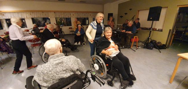 Fyrsta kráarkvöldið á Hlíð í nærri 2 ár var haldið í gær. Íbúar og starfsfólk dönsuðu, sungu, hlóu og skemmtu sér konunglega.Hljómsveitin Hlíðin mín fríða steig á stokk við gleði íbúanna.
