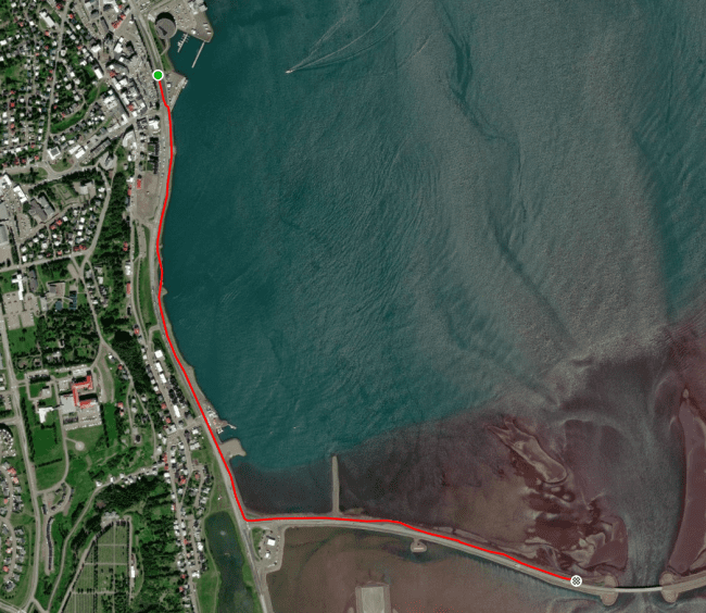 Gengið verður í suðurátt frá Hofi og snúið við þegar leiðin er hálfnuð og gengið til baka. Brautarverðir verða á leiðinni til að leiðbeina þátttakendum og hvetja þá til dáða. Gönguleiðin er 4,7 km, hún liggur frá rásmarki, rétt sunnan við Hof, beygt til austurs við gatnamótin á móts við Leirunesti og nýi göngustígurinn genginn langleiðina að brúnni, þar er snúningspunktur og gengið er aftur til baka, sama leið í mark. Frekari upplýsingar og skráning er á vefsíðu UFA.