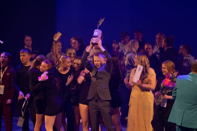 Það var rafmögnuð stemning í Hofi, stappfullt hús af áhorfendum og ríflega 120 keppendur sem blómstruðu á sviðinu í dansi söng og leik. Kynnar kvöldsins voru Vandræðaskáldin Villi og Sessí og ungstirnið Gugusar brilleraði í dómarahléinu. Dómarar kvöldsins voru Marta Nordal leikhússtjóri, Jenný Lára Arnórsdóttir skólastjóri Leiklistarskóla LA og Freyja Dögg fulltrúi frá Ungmennaráði Akureyrar. Þær fengu það erfiða hlutskipti að raða í þrjú efstu sætin.