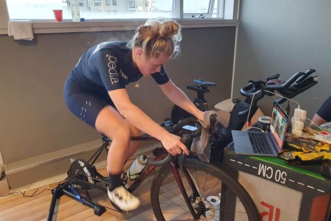 Hafdís Sigurðardóttir, hjólreiðakona ársins og Íslandsmeistari, kláraði í hádeginu í dag 1.012 kílómetra á hjólinu en hún byrjaði að hjóla klukkan 15 á föstudag og hjólaði því í 46 klukkutíma. Hafdís hjólaði 22 km á hverjum klukkutíma og tók stuttar pásur inn á milli.