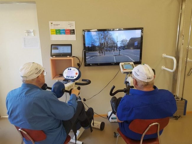 Þessi hugbúnaður hefur nú verið í tæp tvö ár á öldrunarheimilunum og mælst mjög vel fyrir. Á Hlíð náðu keppendur að hjóla yfir 400 km fyrstu vikuna í keppninni. Um 50 manns taka þátt fyrir hönd Öldrunarheimilanna.