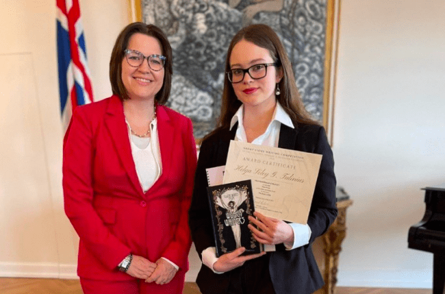 Helga Sóley G. Tulinius, nemandi í Menntaskólanum á Akureyri, fékk verðlaun fyrir bestu smásögu á framhaldsskólastigi í smásögusamkeppni Félags enskukennara á Íslandi í síðustu viku. Lesa má meira um smásagnasamkeppni í MA hér.