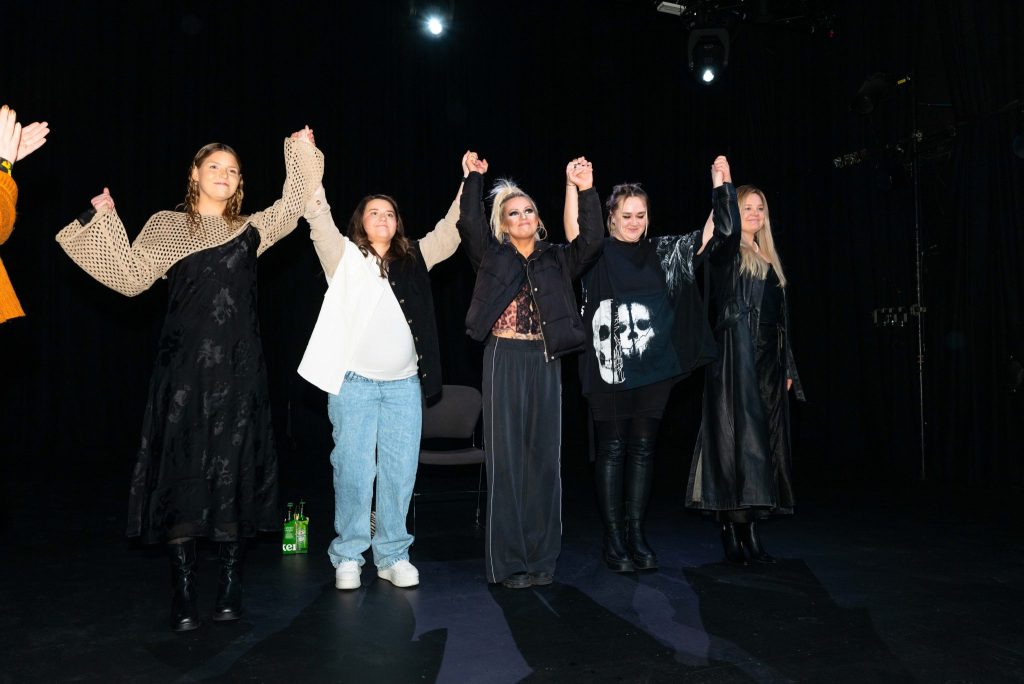 „Við mættum með fyrsta og eina fluginu á föstudagsmorgun og höfum fengið frábærar móttökur hér í Samkomuhúsinu með rétt fólk í hverju horni. Akureyrarbær getir stært sig af frábæru fagfólki sem hlúir svakalega vel að sviðslistum hér í bæ, allt upp á 10 í fallegasta leikhúsi landsins.“