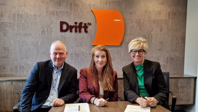 Á myndinni hér fyrir ofan má sjá þau Jón Birgi Guðmundsson útibússtjóra á Akureyri, Sesselju Ingibjörgu Barðdal Reynisdóttur, framkvæmdarstjóra Driftar EA og Unu Steinsdóttur framkvæmdastjóra viðskiptabanka, við undirritun samstarfssamningsins.