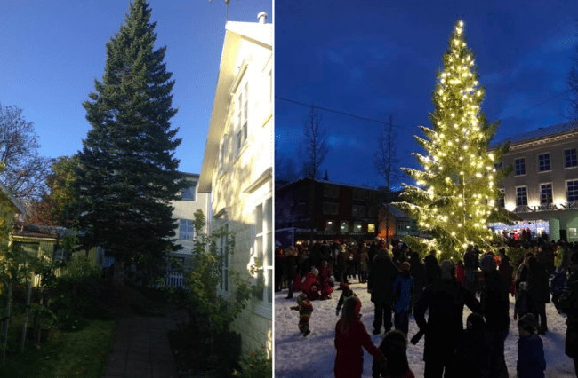 Akureyringurinn Aðalheiður Ingadóttir greindi frá því á Facebook síðu sinni á dögunum að Akureyrarbær hefði ekki áhuga á því að fá stórt grenitré, sem hún þarf að fella í garðinum sínum,sem gjöf til að hafa á Ráðhústorgi sem jólatré í ár.