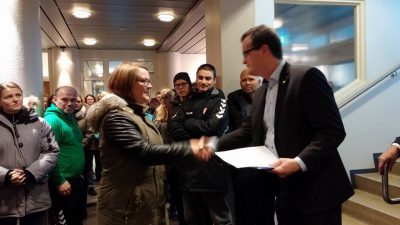 Í dag kl.15.30 skiluðu kennarar inn undirskriftarlista til bæjarstjórnar Akureyrar. Undir kröfuna, sem byrjaði á facebook, hafa um 3000 kennarar víðsvegar um landið skrifað og hafa nú flestir skilað honum inn til sveitarstjórna. Þar eru kennarar að krefjast þess að sveitarfélögin í landinu bregðist við alvarlega ástandinu sem skapast hefur í skólakerfinu vegna rangra áherslna kjarastefnu sveitarfélaga gagnvart grunnskólakennurum, en Kaffið fjallaði nánar um undirskriftirnar og kröfuna í heild sinni í gær.