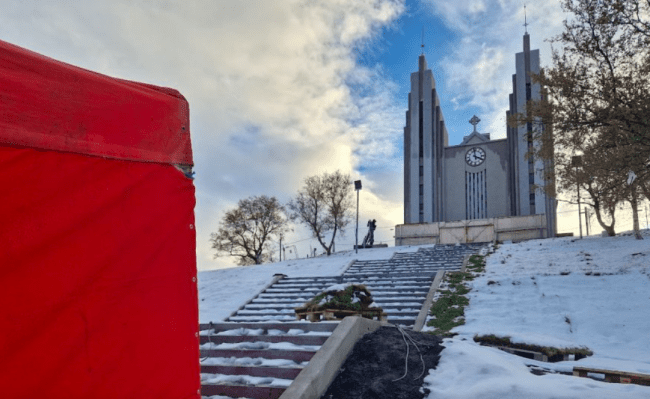 Tröppurnar hafa verið lokaðar síðan í byrjun sumars 2023 en upphaflega stóð til að viðgreðin yrði kláruð strax um haustið 2023. Opnuninni hefur svo verið frestað tvisvar í viðbót síðan þá.