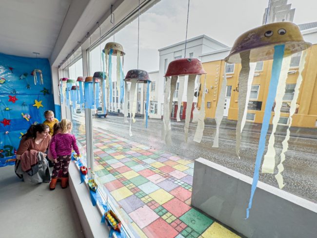 Börn á deildunum Engjarós og Smára í leikskólanum Kiðagili opnuðu í gærmorgun sýninguna „Heimur og haf“ í Mjólkurbúðinni í Listagilinu. Börnin sýndu þar afrakstur vinnu með listamanninum Agli Jónassyni sem vann meðal annars tónverk með börnunum og tók upp sögur um hafið. Þetta kemur fram á vef Akureyrabæjar.