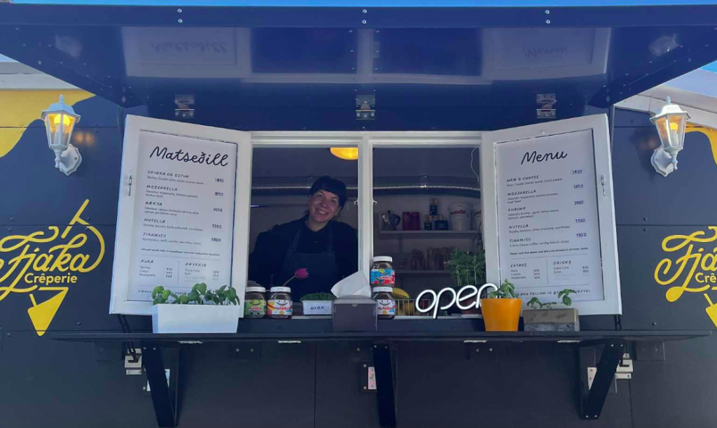 Hugmyndafræðin að Fjaka crêperie er einfaldleiki og gæði. „Við notum næstum eingöngu íslensk hráefni þar á meðal staðbundna osta, skinku, reyktan lax og rækjur. Það eina sem kemur að utan er bananar og Nutella en við getum hreinlega ekki verið án þess,“ segja þau og hlæja. Það sem skilur vagninn þeirra frá mörgum öðrum er áherslan á ferskleika og heimagerða vöru og leggja þau metnað sinn í að bjóða upp á mat sem er unninn frá grunni.