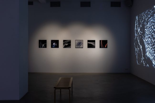 Innsetningin samanstendur af myndböndum sem umlykja rýmið og skapa samræmda heild sem minnir á abstrakt og lífrænan innri heim lifandi veru.