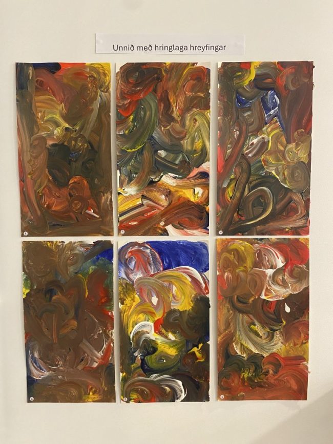 „Á sýningunni eru listaverk unnin af börnum leikskólans. Börnin unni með liti, form og efni á skapandi hátt og ýmsum mismunandi aðferðum var beitt við sköpunina. Mikil áhersla er lögð á skapandi starf í leikskólanum eins og sýningin sýnir svo skemmtilega,“ segir í tilkynningu frá Þingeyjarsveit.