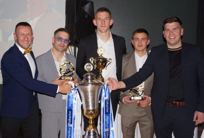 Lokahóf knattspyrnudeildar KA fór fram í veislusal Múlabergs um helgina. Sigurgleðin var allsráðandi enda sögulegu sumri lokið þar sem KA hampaði Bikarmeistaratitlinum í fyrsta skiptið í sögunni. Fyrr um daginn vann KA glæsilegan 1-4 útisigur á Fram sem tryggði sigur í neðri hluta Bestu deildarinnar. Þetta segir í frétt á heimasíðu KA.