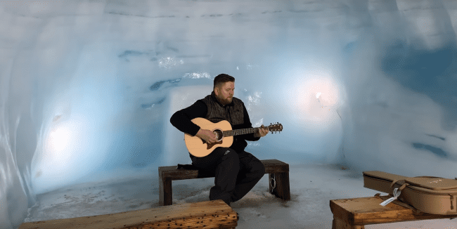 Stórsöngvarinn og Dalvíkingurinn Matti Matt setti á dögunum inn myndband sem hefur vakið verðskuldaða athygli. Myndbandið sýnir Matta, sem var búinn að koma sér fyrir lengst inn í Langjökli, þar sem hann tyllir sér með gítarinn og tekur lagið Shallow.