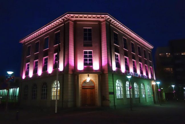 Ýmis fyrirtæki á Akureyri hafa tekið upp á því að lýsa byggingar sínar upp með bleiku ljósi til stuðnings baráttunni. Útkoman er ansi falleg í haustmyrkrinu. Inga Vestmann tók myndir af nokkrum þekktum byggingum Akureyrar og má sjá útkomuna hér að neðan.