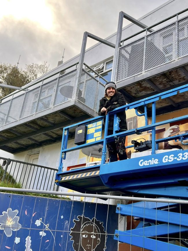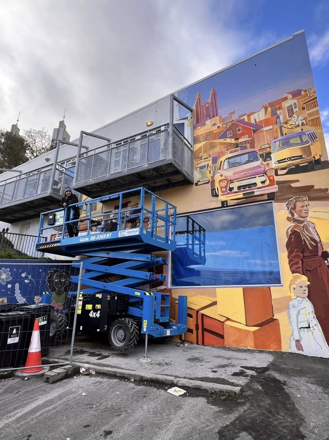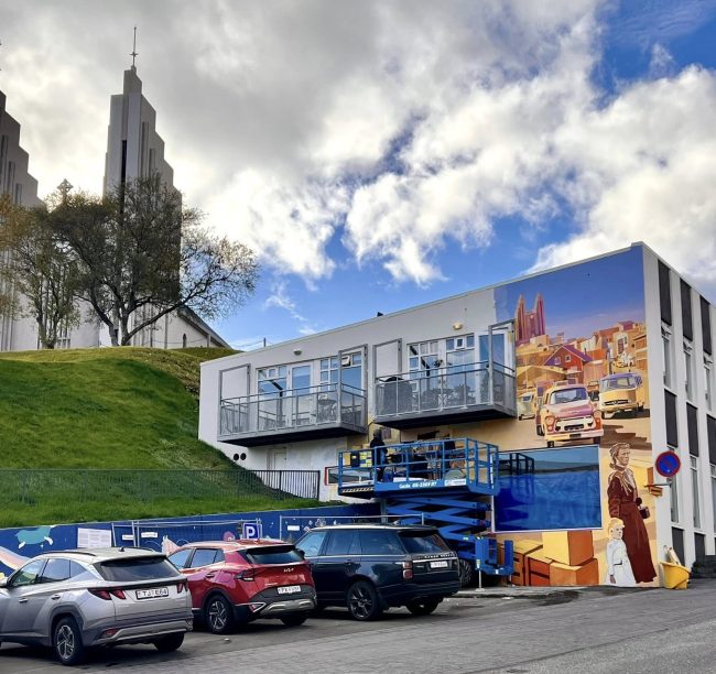 Götulistamaðurinn Stefán Óli Bladursson, sem stundum gengur undir listamannanafninu Mottan, vinnur þessa dagana að nýju vegglistaverki í Listagilinu. Verkið er á austurhlið Kaupvangsstrætis 19, þar sem Fornbókabúðin Fróði var til húsa um árabil. Það blasir því við gestum og gangandi í hjarta bæjarins. Málverkið er byggt á gömlum ljósmyndum af Akureyri.
