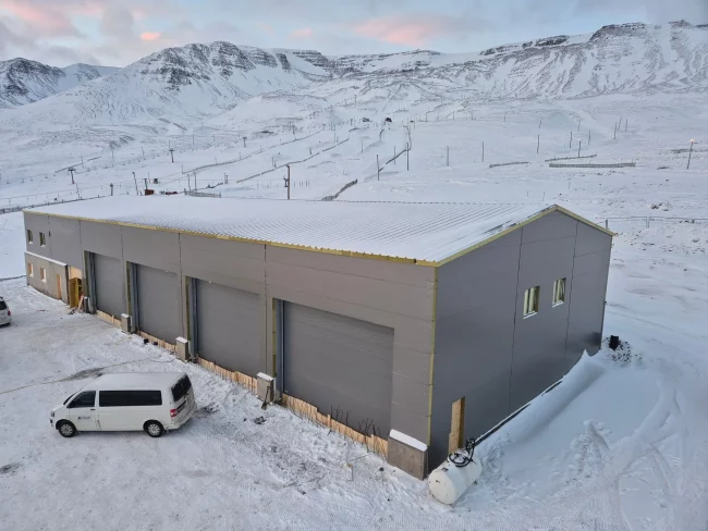 Súlur stálgrindarhús ehf., dótturfélag Slippsins Akureyri ehf., hefur lokað nýrri vélaskemmu sem fyrirtækið reisir fyrir Akureyrarbæ á skíðasvæðinu í Hlíðarfjalli. Um er að ræða 800 fermetra hús að grunnfleti en því til viðbótar er starfsmannaaðstaða á tveimur hæðum í húsinu og heildargólfflötur er því um 1000 fermetrar. Samhliða lokafrágangi utanhúss hefst vinna við innahússfrágang strax eftir áramót.