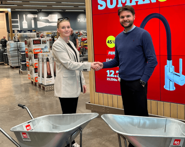 „Það er alltaf gaman og mikilvægt að geta tekið þátt í nærsamfélagi og hjálpa til. Við hjá Húsasmiðjunni óskum Hríseyingum til hamingju með nýjar hjólbörur og höfum fulla trú á að þær endist jafn vel og lengi og þær fyrri,“ segir Aron Pálsson Rekstrarstjóri á Akureyri.