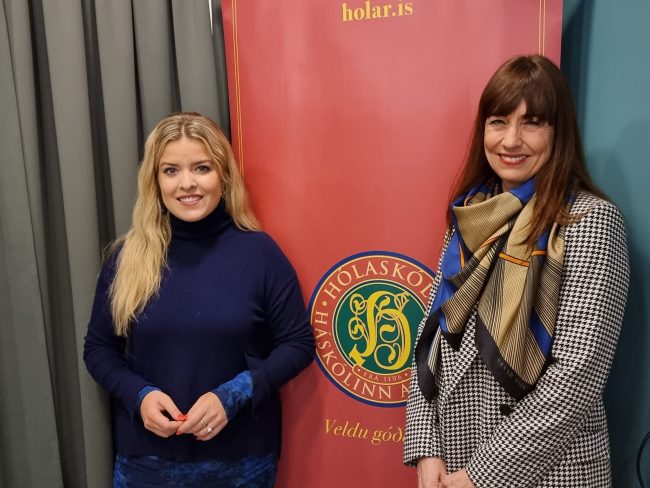 Ráðherra háskóla, iðnaðar og nýsköpunar, Áslaug Arna Sigurbjörnsdóttir, tilkynnti skipun nýs rektors á starfsmannafundi Háskólans á Hólum í dag og bauð Hólmfríði velkomna til starfa. Hér í viðhengi er mynd af Áslaugu og Hólmfríði sem tekin var eftir fundinn.