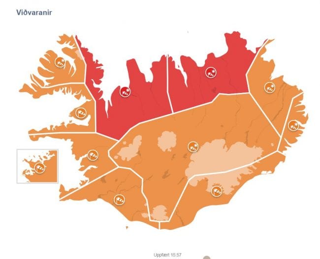 Veður fer síversnandi á landinu öllu með deginum og flestar stofnanir, verslanir og veitingastaðir auglýst lokun vegna veðurs. Veðurstofa gaf nú út kl. 16.00 rauða viðvörun á Norðurlandi Eystra en áður var hún appelsínugul.