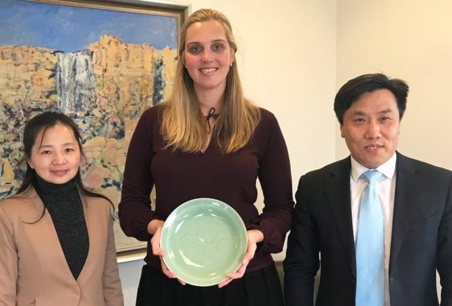 Hjónin heimsóttu einnig Atvinnuþróunarfélag Eyjafjarðar og Háskólann á Akureyri en í dag halda þau austur á bóginn, skoða Goðafoss og heimsækja Mývatnssveit. Jin og He létu ákaflega vel af heimsókn sinni til Akureyrar og sögðust örugglega ætla að koma fljótt aftur. Gestirnir færðu sveitarfélaginu fallega gjöf sem Ásthildur Sturludóttir veitti móttöku.