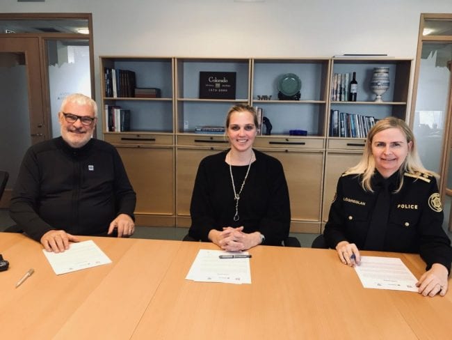 Samkomulag um uppsetningu á löggæslumyndavélum á Akureyri var undirritað í dag, Þórhallur Ólafsson forstjóri Neyðarlínunnar ohf., Ásthildur Sturludóttir bæjarstjóri á Akureyri og Halla Bergþóra Björnsdóttir lögreglustjóri á Norðurlandi eystra undirrituðu samkomulagið.