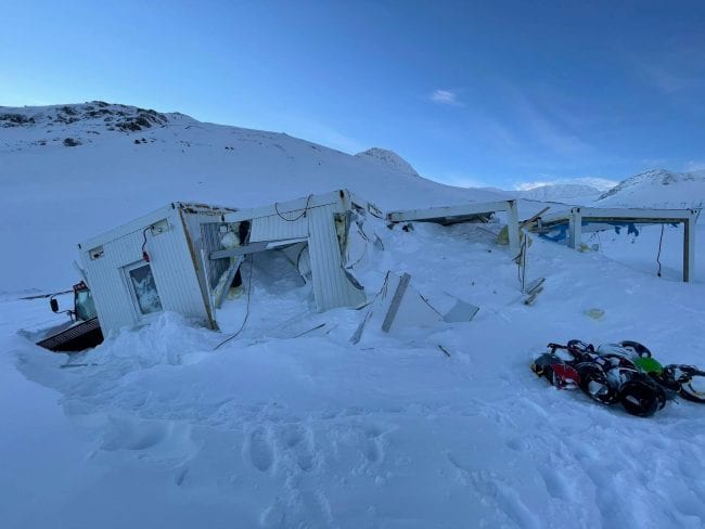 Til stóð að opna svæðið í dag að því varð ekki vegna veðurs. Skíðaskáli sem reistur var árið 2005 og fjórir gámar sem hýstu skíðaleigu eyðilögðust algerlega í snjófljóðinu.