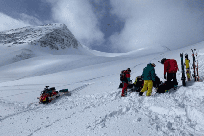 Björgunarsveitarfólk fór á vélsleðum á vettvang og hlúði að konunni sem var slösuð á fæti eftir að hún hafði dottið á skíðum. Hún var flutt á vélsleða að sjúkrabíl sem lagði af stað rétt í þessu með konuna til skoðunar á sjúkrastofnun.