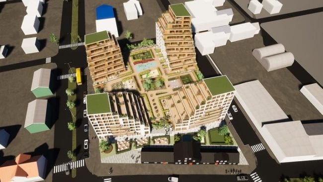 Hugmyndir að því að byggja íbúðir í þéttri byggð á umræddum byggingarreit hafa komið fram í deiliskipulagsgögnum frá Akureyrarbæ mörg undanfarin ár. Hugmyndin er því ekki komin frá SS Byggir ehf. SS Byggir ehf hefur hins vegar óskað eftir því að fá að byggja hærri hús en fjögurra hæða eins og rammaskipulag svæðisins segir til um og þess vegna sótt um breytingu á aðalskipulagi. Það flóknasta og erfiðasta við þessar hugmyndir er að innan skipulagsreitsins er eitt einbýlishús. Ef verkefnið hlýtur brautargengi næst vonandi gott samkomulag við íbúa þess um uppkaup sem og við aðra eigendur á svæðinu. Núverandi og gildandi aðalskipulag gerir ráð fyrir uppbyggingu á þessum reit með tilheyrandi uppkaupum og niðurrifi eldri bygginga.