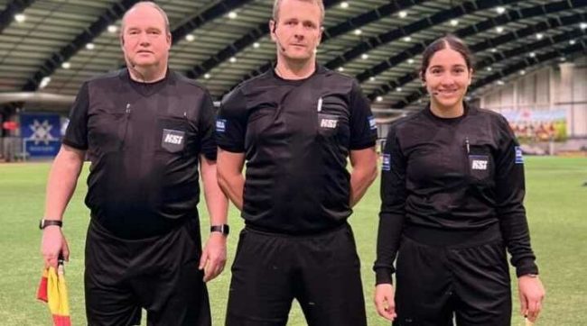 Leyla Ósk er nýorðin 14 ára og var hún að dæma sinn þriðja leik í Kjarnafæðismótinu. Stefán verður 63 ára á árinu og er hann hvergi nærri hættur að dæma. Stefán hefur dæmt frá 17 ára aldri eða í 47 ár og telur hann leikina sína komna yfir 1500 talsins. Þegar Leyla fæddist var Stefán þegar búinn að dæma í 31 ár. Þetta kemur fram í tilkynningu á vef KSÍ.